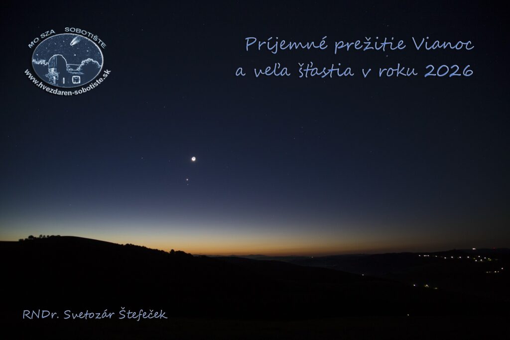Milí členovia a priaznivci Hvezdárne Sobotište, prajem Vám príjemné prežitie Vianočných sviatkov a všetko najlepšie v novom roku 2026.