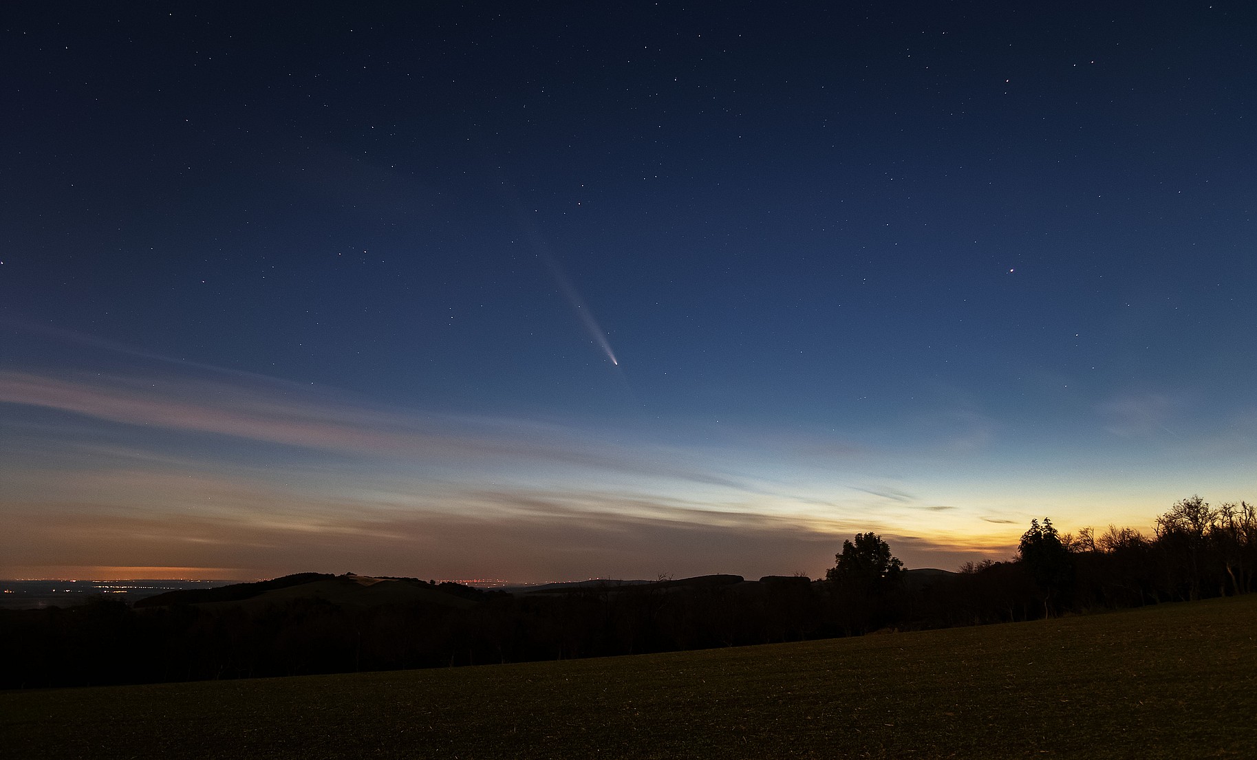 Kométa C/2015 V2(Johnson) fotografovaná 28. mája 2017 v čase 22:45 – 23:00. Finálna snímka vznikla skladaním 16 záberov po 30 sekundách (8 s nastavením ISO na 1600 a 8 s ISO 3200). V čase expozícia sa nachádzala 0,821 AU (123 mil. km) od Zeme a 1,648 AU (246 mil. km) od Slnka.